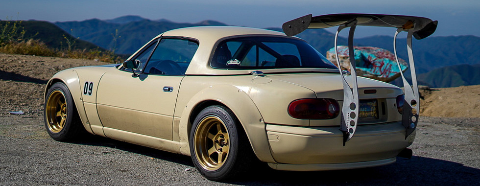 This Miata looking like it meant business cruised up with its impressive chassis mount wing. After a quick chat with the owner I found that the car was built in his garage . A super light weight chassis with a little extra power supplied by a custom turbo setup. What a fun little runner, I'm sure the car was really able to attack all the canyon's tight corners.